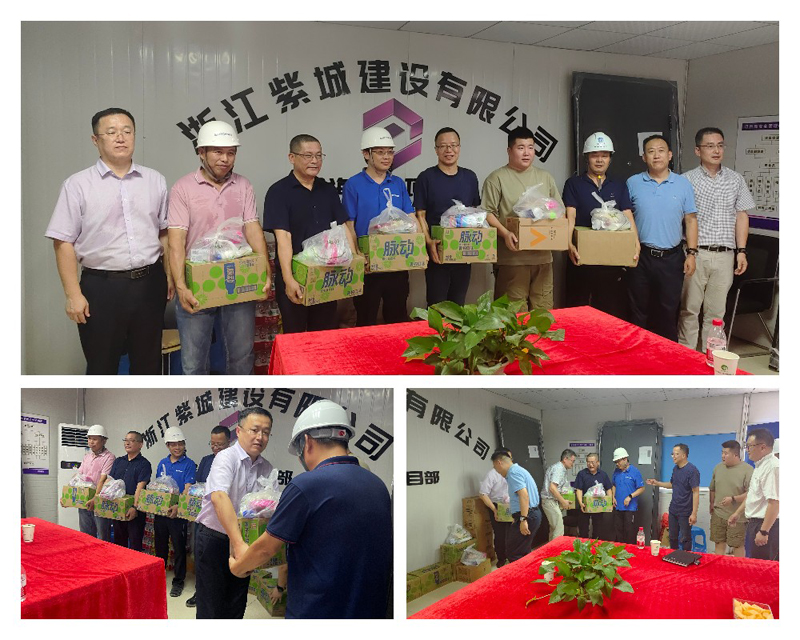 省供销社党委委员、理事会副主任冯冠胜,兴合集团副总裁夏晓峰,集团总经理吴元明,副总经理何庆红、蒋柱良等调研集团海盐片区业务,并赴海盐春风云庐和滨海蓝湾项目现场慰问高温酷暑期间仍坚守一线的项目施工人员,为他们送上了清凉和关爱,嘱咐他们要把安全和健康放在第一位,保障好一线员工的身心健康和劳动安全。