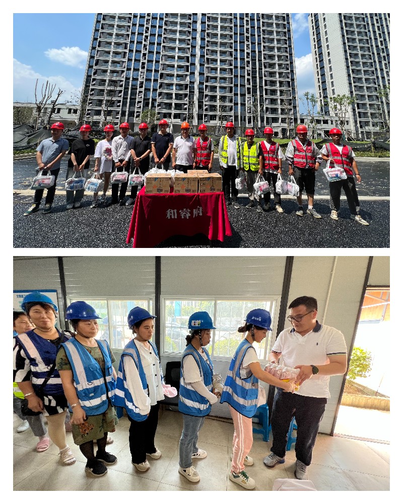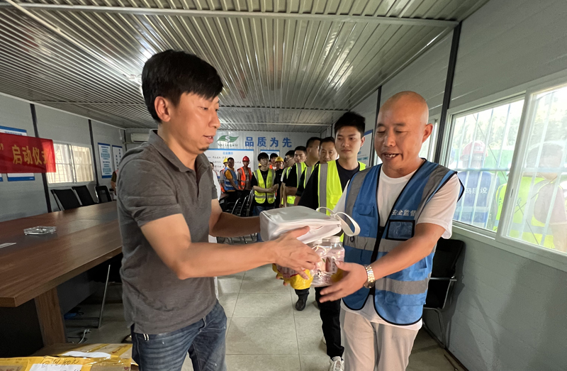 “大家辛苦了,感谢你们!”慰问组一行给工人送上饮料、洗浴用品等高温慰问品,向奋战在一线的工人们捎去问候、送上清凉,感谢他们的辛勤付出,表达了上级领导和工会的亲切关怀。