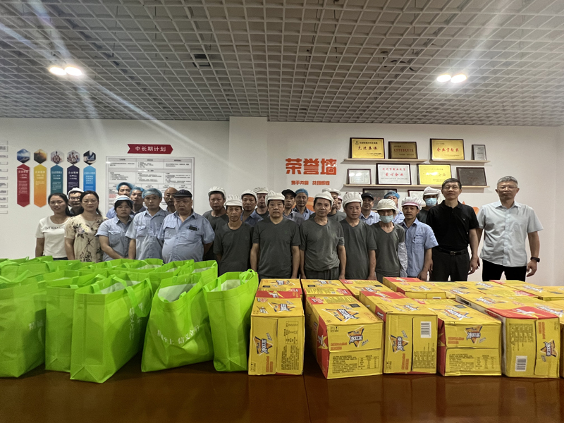 吴元明将沉甸甸的高温慰问品送到工人手中,向奋战在一线的工人们捎去问候、送上清凉,感谢他们的辛勤付出,也表达了集团公司的亲切关怀。同时他叮嘱企业务必做好防暑降温和安全生产工作,确保顺利完成全年的生产经营目标。
