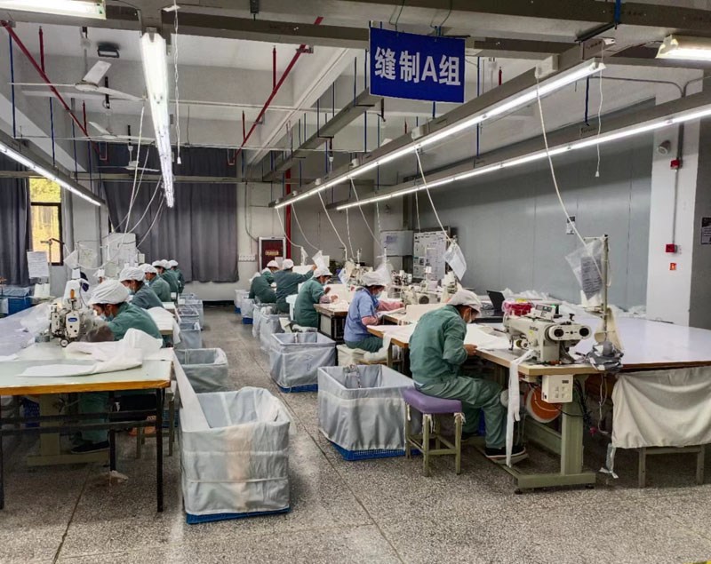 本次比武共有200余名华兴员工参与角逐,经过激烈的初赛选拔,最终12名生产能手闯入决赛阶段。决赛中,各位选手抽签就坐,随着裁判一声哨响立刻投入到紧张的生产作业。各位决赛选手都是各生产车间的技术“大拿”,穿针、绕线、踏板、走针……每道工艺都胸有成竹、信手捏来,几块布料在她们的一双双巧手下,逐渐制成一件件整齐美观的床品,整个车间都回荡着缝纫机如群蜂采蜜般强劲有力的轰鸣声,构成了一幅热火朝天的劳动图景。